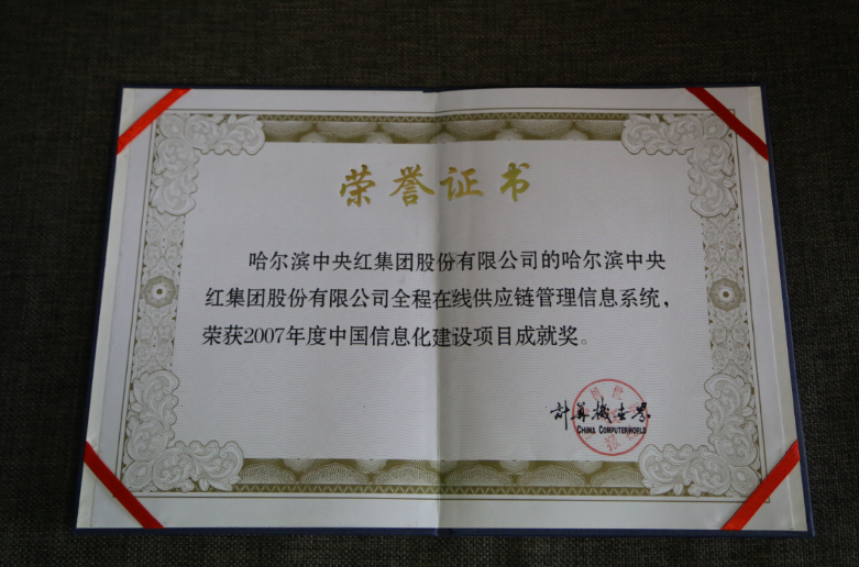 中央红集团全程在线供应链管理信息系统荣获“中国信息化建设项目成就奖”