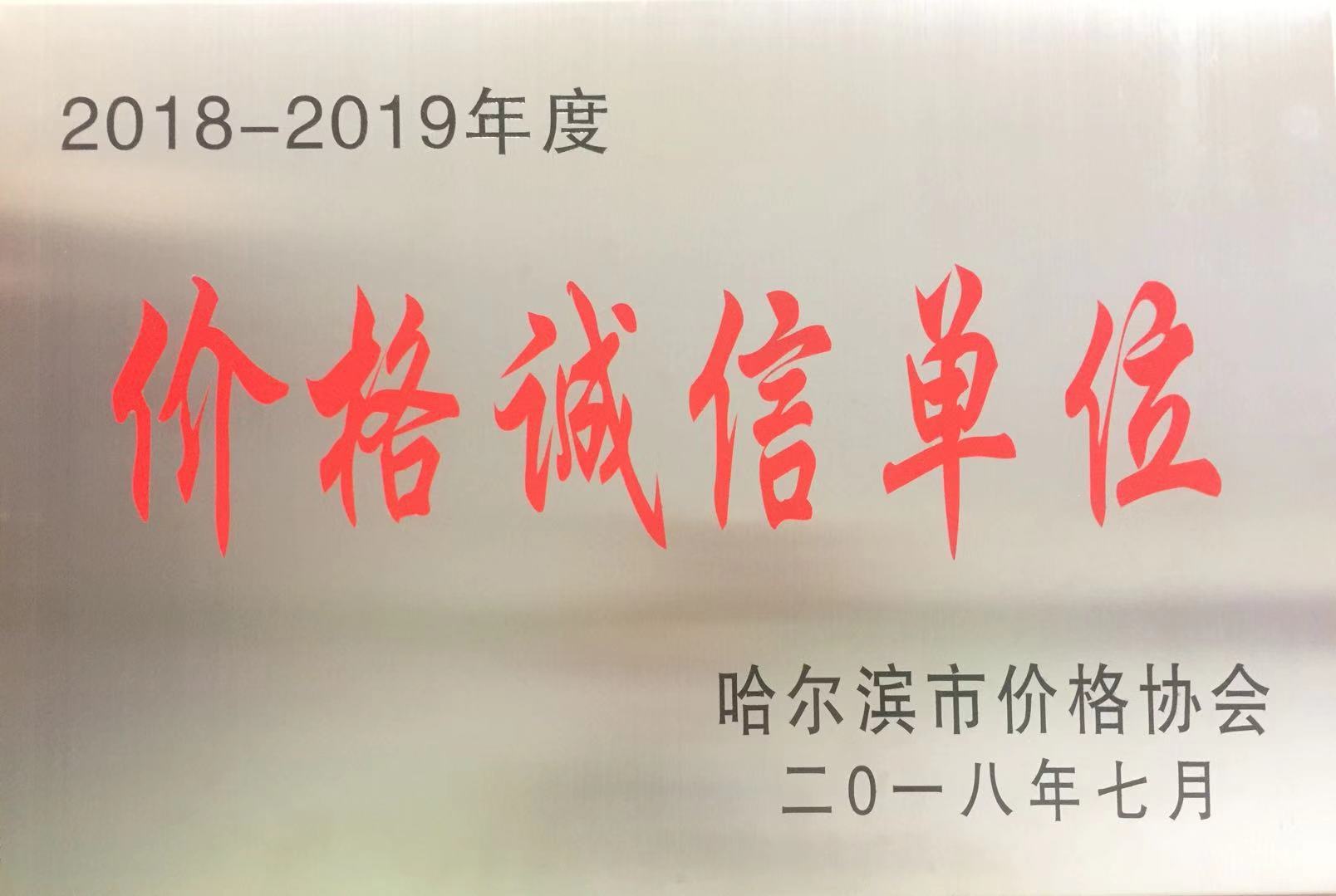 2018-2019年度价格诚信单位