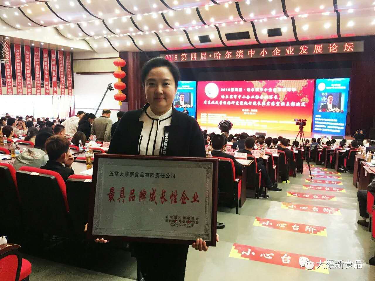 中央红集团五常大羅新食品有限责任公司在哈尔滨电视台与哈尔滨中小企业协会的联合评选中,荣获“最具品牌成长性企业”