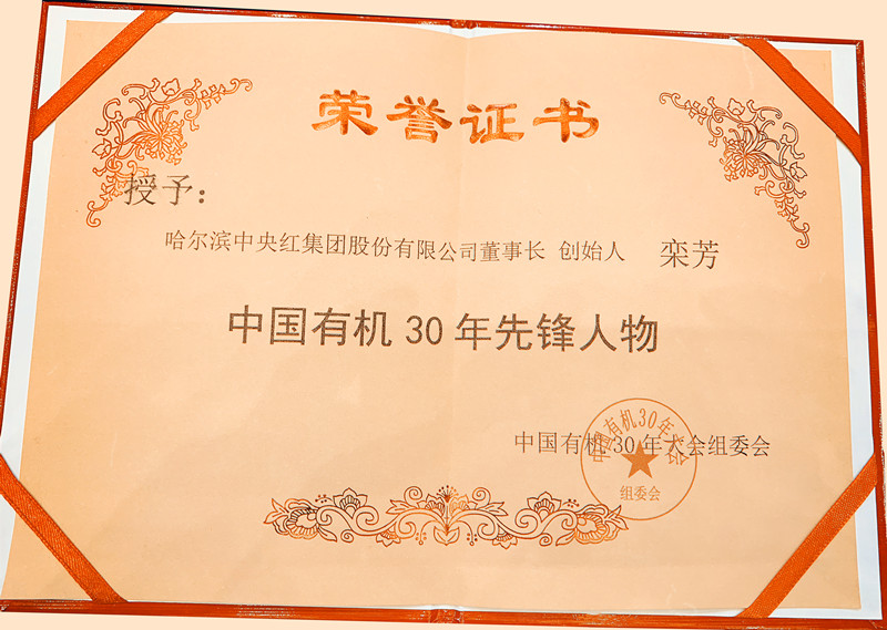 中央红集团创始人、董事长栾芳女士荣获“中国有机30年先锋人物”称号