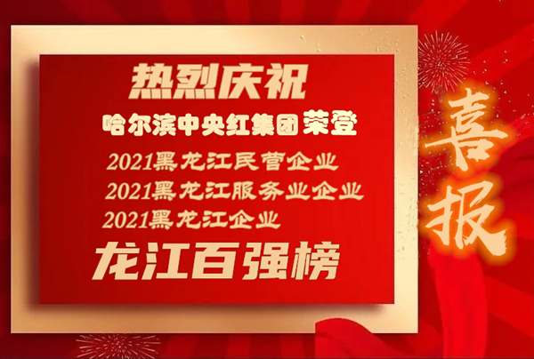 中央红集团荣登“黑龙江民营企业100强”、“黑龙江服务企业100强”、“黑龙江企业100强”百强榜