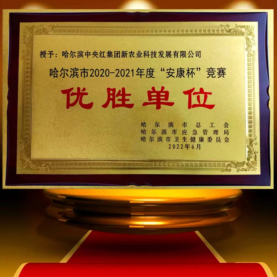 2022年6月中央红集团新农业公司在哈尔滨市总工会、哈尔滨市应急管理局、哈尔滨市卫生健康委员会举办的2020-2021年度“安康杯”竞赛中,荣获“优胜单位”。